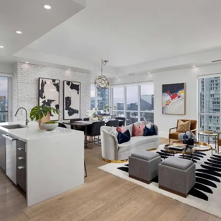 C'è una cucina completamente attrezzata nell'Appartamento Skyline Royale Penthouse - Downtown Toronto - Cn Tower View, Balcony, Pool, Hot Tub, offrendo agli ospiti la possibilità di cucinare i propri pasti. L'appartamento si trova vicino alla stazione della metropolitana St Andrew, che è a 950 metri. Quest'appartamento dispone di una sauna per il relax degli ospiti.